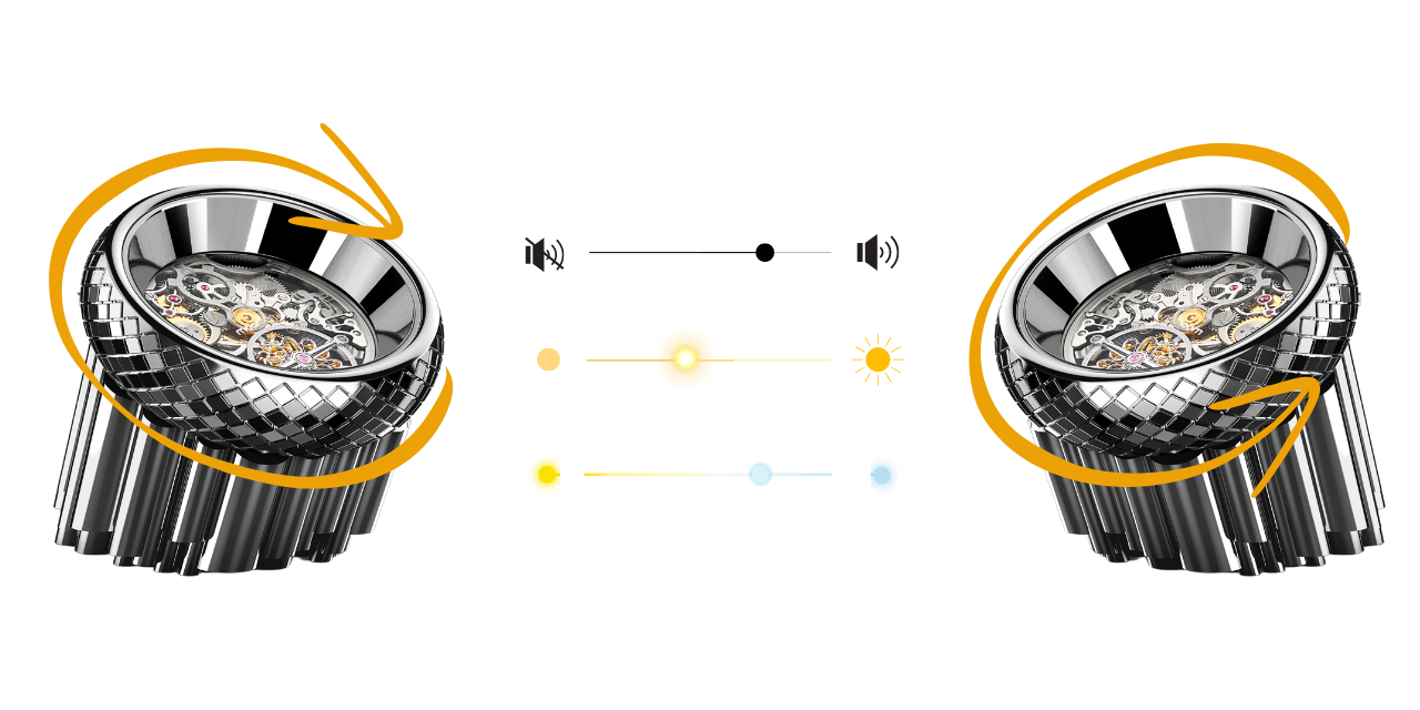 Control all 0-100% devices, such as lights, light temperature, and music volume, by rotating the outer rim of the dimming knob or sliding on the screen.