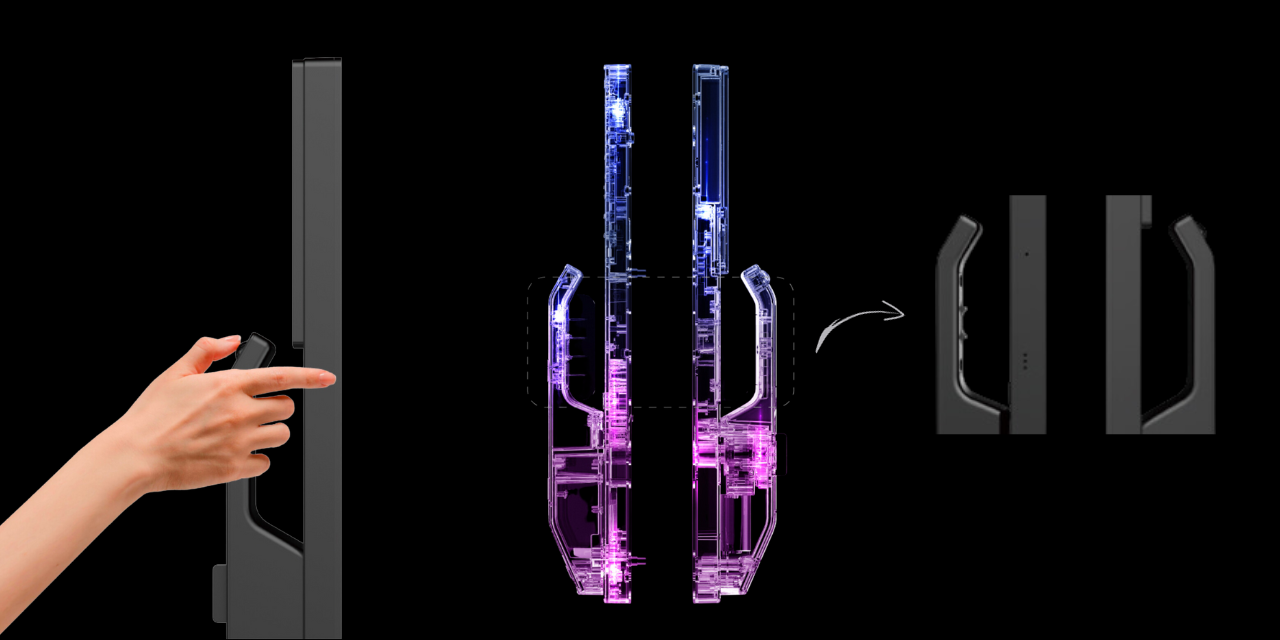The child lock works with a touch sensor inside the door handle that only adult hands can trigger to prevent children or pets from opening the door accidentally.