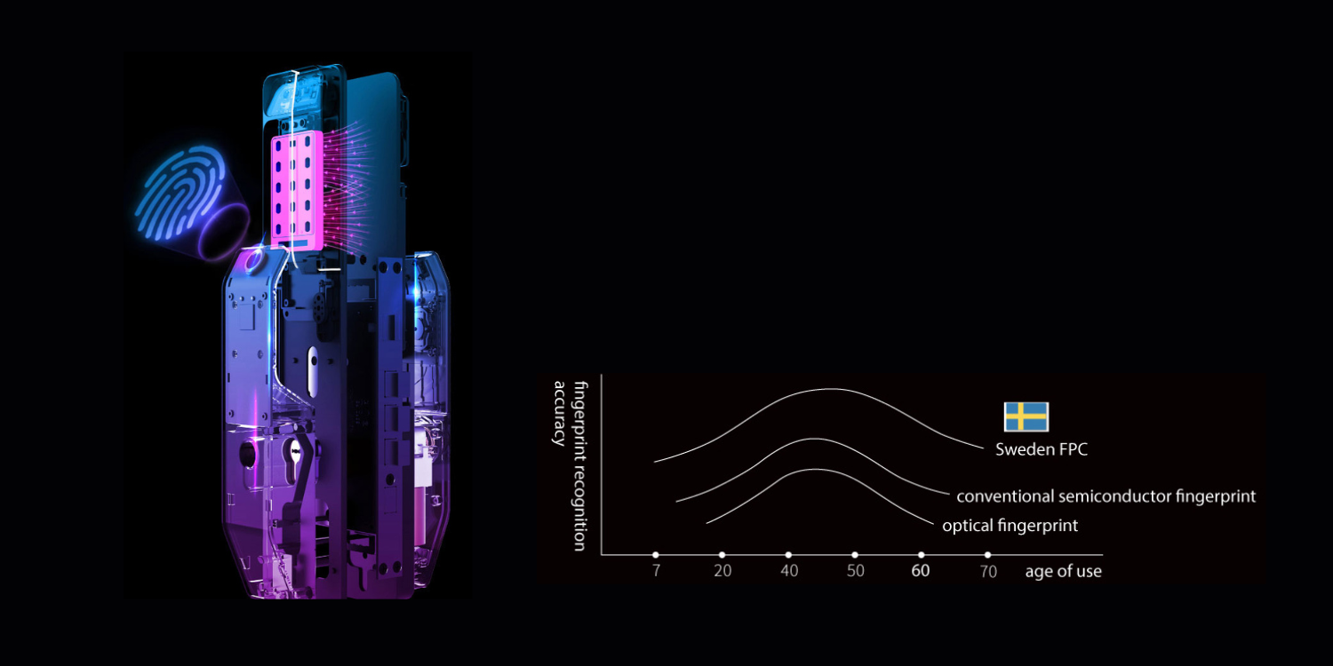 The Moorgen Smart Door Lock - T3 Series ใช้เทคโนโลยีลายนิ้วมือจากประเทศสวีเดน (FPC)ซึ่งให้การจดจำลายนิ้วมือที่โดดเด่นสำหรับทุกวัยที่ขับเคลื่อนโดยเทคโนโลยี SafeTouch®
